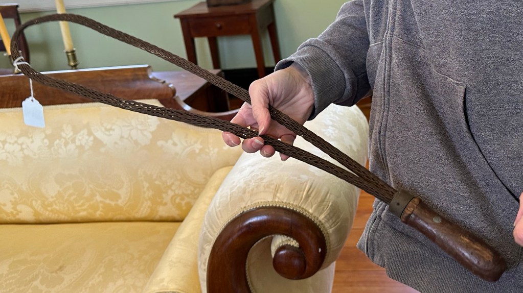 A carpet beater, also known as a rug beater, is a tool used to clean carpets by shaking out dust and dirt. It was commonly used until the affordable vacuum cleaners became popular.